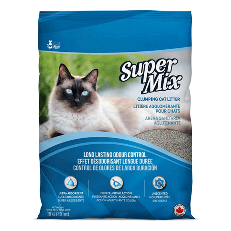 Cat Love Super Mix Unscented Clumping Cat Litter contains sodium bentonite for solid, durable clumping action. This unscented, ultra absorbent litter offers superior odour control while the clumping action helps to reduce litter pan cleanings. Just scoop and remove the urine or solid waste clumps daily and replace the volume of clumps with a similar amount of new Super Mix cat litter. Available in 2 sizes. Key Features : • Unscented • Firm clumping action • Ultra absorbent • Long-lasting odor control
