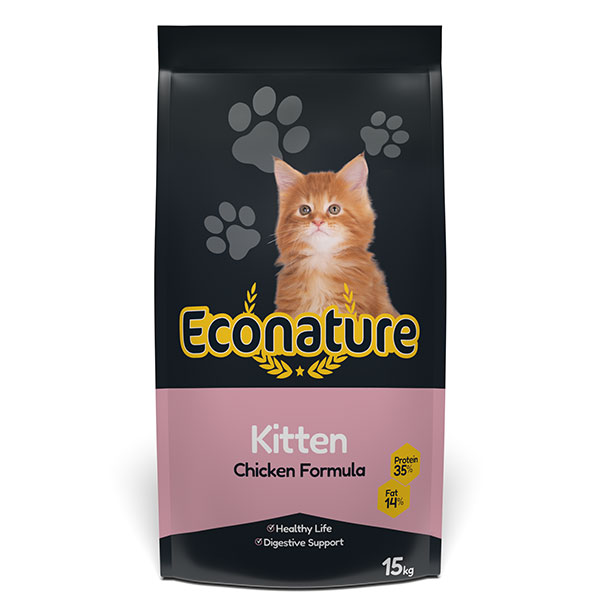 It is a complete and balanced kitten food containing chicken protein, carefully formulated by cat/dog nutritionists to meet the daily nutritional needs of all breeds of kittens. CONTENT Processed Chicken Protein (40%), Cereals, Processed Animal Protein, Chicken Fat, Rice, Potassium Chloride, Liver Flavour, Salt, Taurine (1000 mg/kg), Mannanoligosaccharides and B-Glucans (0.1%) ANALYTICAL COMPONENTS Protein: 35%, Fat content: 14%, Crude Fiber: 2.5%, Crude Ash: 8 NUTRITIOUS SUPPLEMENTS Vitamin A (3a672a) 12,500 IU/kg, Vitamin D3 (3a671) 750 IU/kg, Vitamin E (3a700) 120 mg/kg Iron(II) sulphate monohydrate (3b103) 45 mg/kg, Copper sulphate pentahydrate (3b405) 4. 5 mg/kg, Manganese sulphate monohydrate (3b503) 5 mg/kg, Zinc sulphate monohydrate (3b605) 50 mg/kg, Anhydrous calcium iodate (3b203) 0.90 mg/kg, Sodium selenite (3b802) 0.13 mg/kg TECHNOLOGICAL ADDITIONS Antioxidants, preservatives.