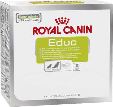 Complementary feed for puppies and adult dogs. NUTRITIONAL SUPPLEMENT Educ combines a limited calorie intake (less than 3 kcal/unit) and optimal palatability for use during your training sessions with your puppy or adult dog.