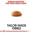 The Great Dane is one of the largest dog breeds. Their noble appearance makes them look like a statue - they combine a tall, strong body, pride, power and elegance. The Great Dane is a friendly, affectionate and loving dog. They love humans but are less submissive than other breeds. Royal Canin Great Dane Adult dry dog food was developed with the special requirements of adult Great Danes from 24 months in mind: Concentrated energy: An exclusive high-energy kibble covers the requirements of the Great Dane without overloading his stomach. The special kibble shape, size and texture encourages intensive chewing to slow down food intake and promote dental hygiene High digestive security: Highly digestible proteins and selected fibre support a balanced intestinal flora Joint protection: Increased chondroitin, glucosamine, EPA and DHA contents help maintain mobility. Cell protection: An anti-oxidant complex (vitamins E and C, taurine and polyphenols from grapes and green tea) helps to fight cell ageing and supports cardiac function