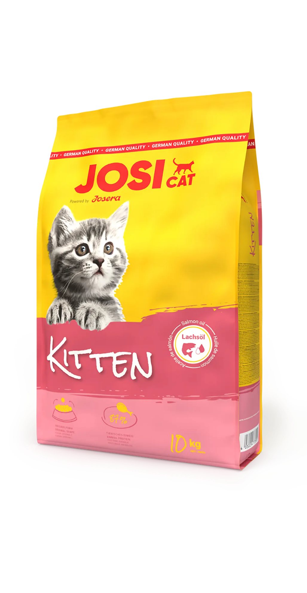 The straightforward menu for adventurous kittens Something ingenious for your little feline friend? It doesn't have to be complicated: our JosiCat Kitten dry food supplies all the important nutrients your kitten needs right from the start to grow big and strong. It also offers impressive value for money. The recipe is designed with delicious flavour in mind. And salmon oil provides valuable omega-3 fatty acids, which contribute to a shiny, silky coat thanks to essential trace elements and vitamins. The high calorific content and balanced nutrient complex are designed to meet the specific needs of younger cats and promote optimal development.