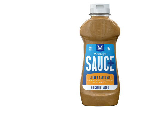 Joint & Cartilage Support Make nutritious meals extra delicious, and add an extra squeeze of health to every bowl with Sauce for Dogs Plus.JOINT & CARTILAGE SUPPORT, In delicious Chicken flavourUP TO 30 SERVINGS Use approximately 1 tablespoon per ½ cup of any dry food AVAILABLE IN 500 ML BOTTLES Recommended for healthy adult dogs*, *Sauce for Dogs should not be fed to puppies, kittens, cats, lactating (pregnant) dogs, overweight (or obese) dogs and dogs with specific health problems. ingredients : Water, chicken stock, corn starch, seasonal fruit and vegetables, sugars, acidity regulator, yeast extract, salt, stabiliser gums, spices and antioxidants (Tocopherols). ADDITIVES: NUTRITIONAL: Glucosamine 50 mg and chondroitin 30 mg; SENSORY: Caramel and flavouring PRESERVATIVES: Vinegar and potassium sorbate Typical analysis: Protein 2.25%, Moisture 87.5%, Total fat 2%, Fibre 0.3