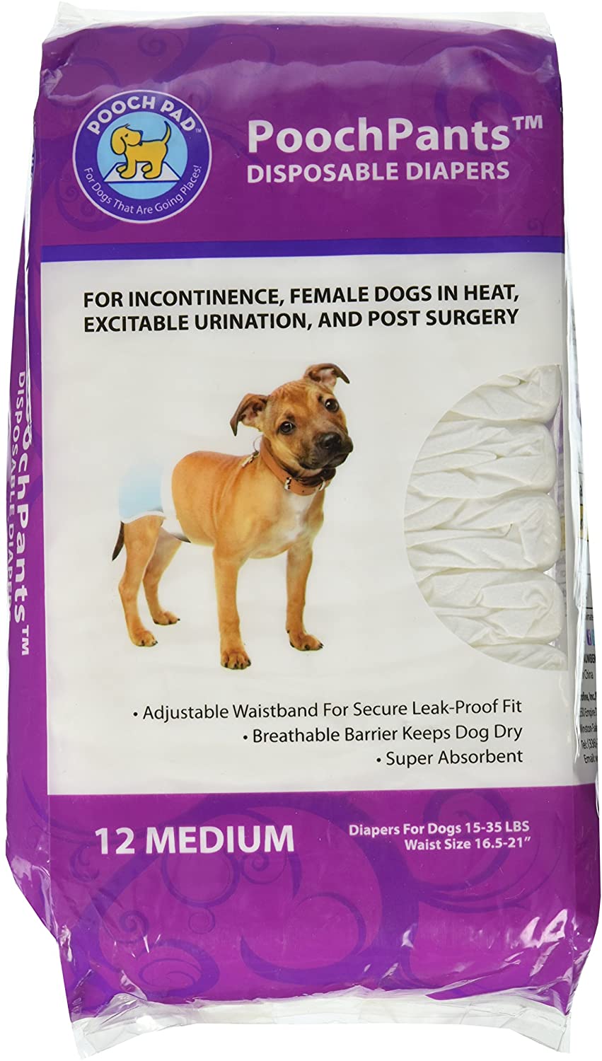 Pooch Pants Disposable Absorbent Diapers Are Available In 5 Different Sizes, Xs To Xl For Best Fit, Pooch Pants Fit Best On Dogs Weighing 15 To 35 Lbs Pooch Pants Disposable Absorbent Diapers Offer An Alternative To Pooch Pad Reusable Diapers Package Dimensions: 5.0" L X 9.0" W X 5.0" H